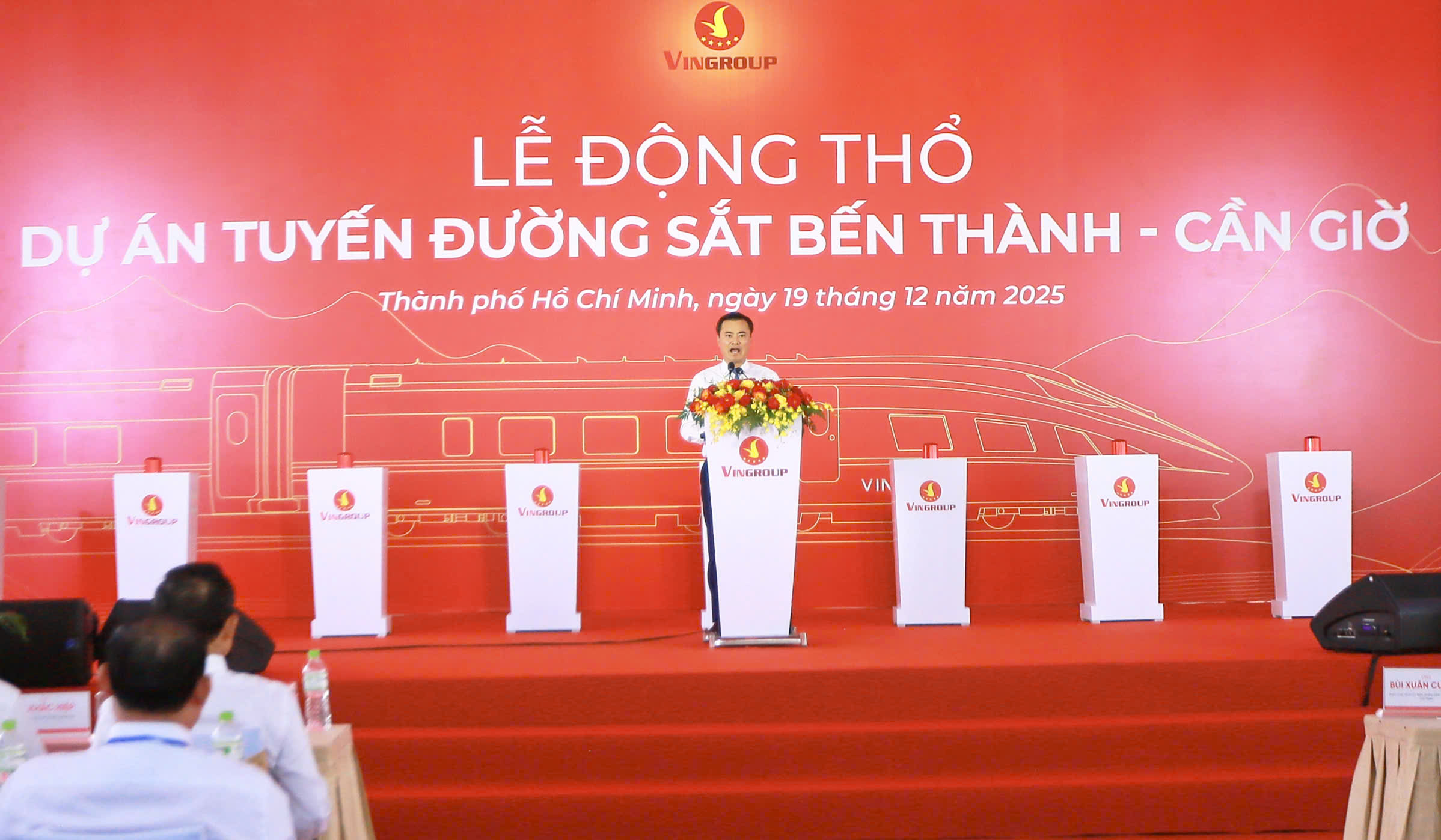 Tại buổi lễ, ông Lê Khắc Hiệp - Phó chủ tịch Tập đoàn Vingroup - cho hay tuyến đường sắt Bến Thành - Cần Giờ sẽ mở ra một chương mới cho ngành công nghiệp đường sắt hiện đại tại Việt Nam. Từ khởi đầu này, chúng ta sẽ đặt những viên gạch đầu tiên cho hệ sinh thái đường sắt tốc độ cao quốc gia trong tương lai, tạo nền tảng cho những bước phát triển đột phá của đất nước.